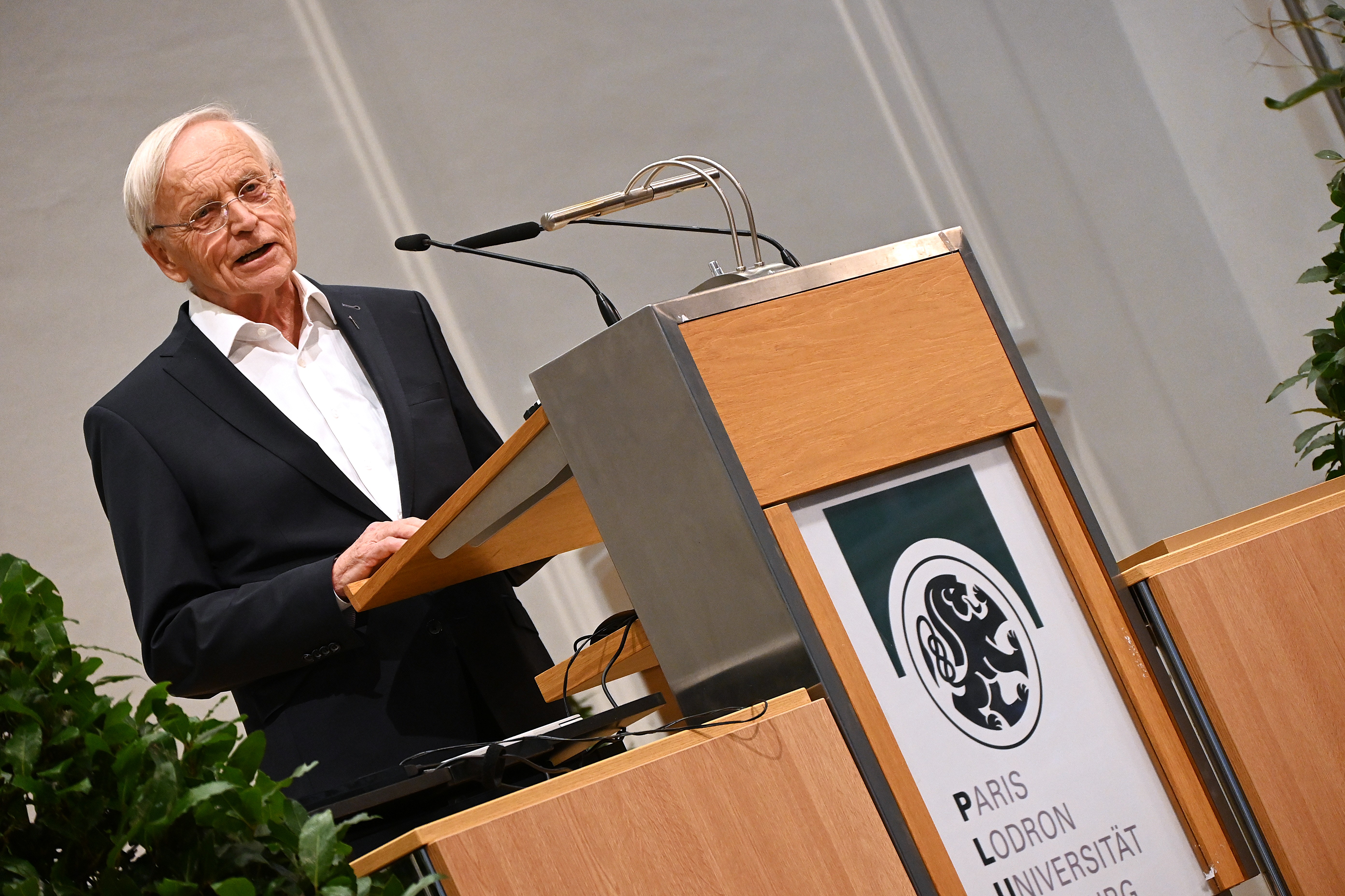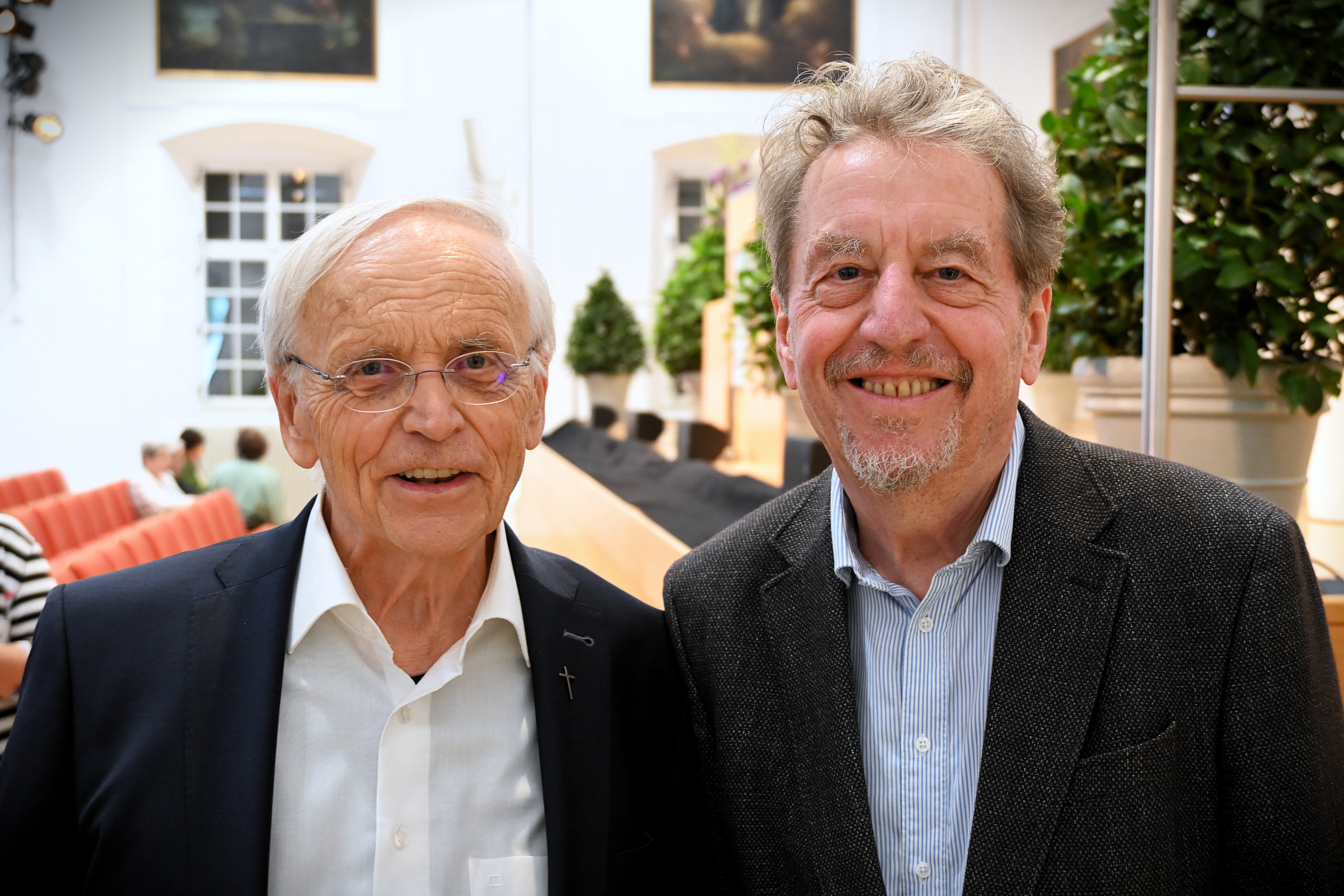 v.l.: Prof. Paul M. Zulehner (Wien), Prof. Hans Joas (Berlin) bei der Verleihung des "Theologischen Preises" der Salzburger Hochschulwochen am 6. August 2025