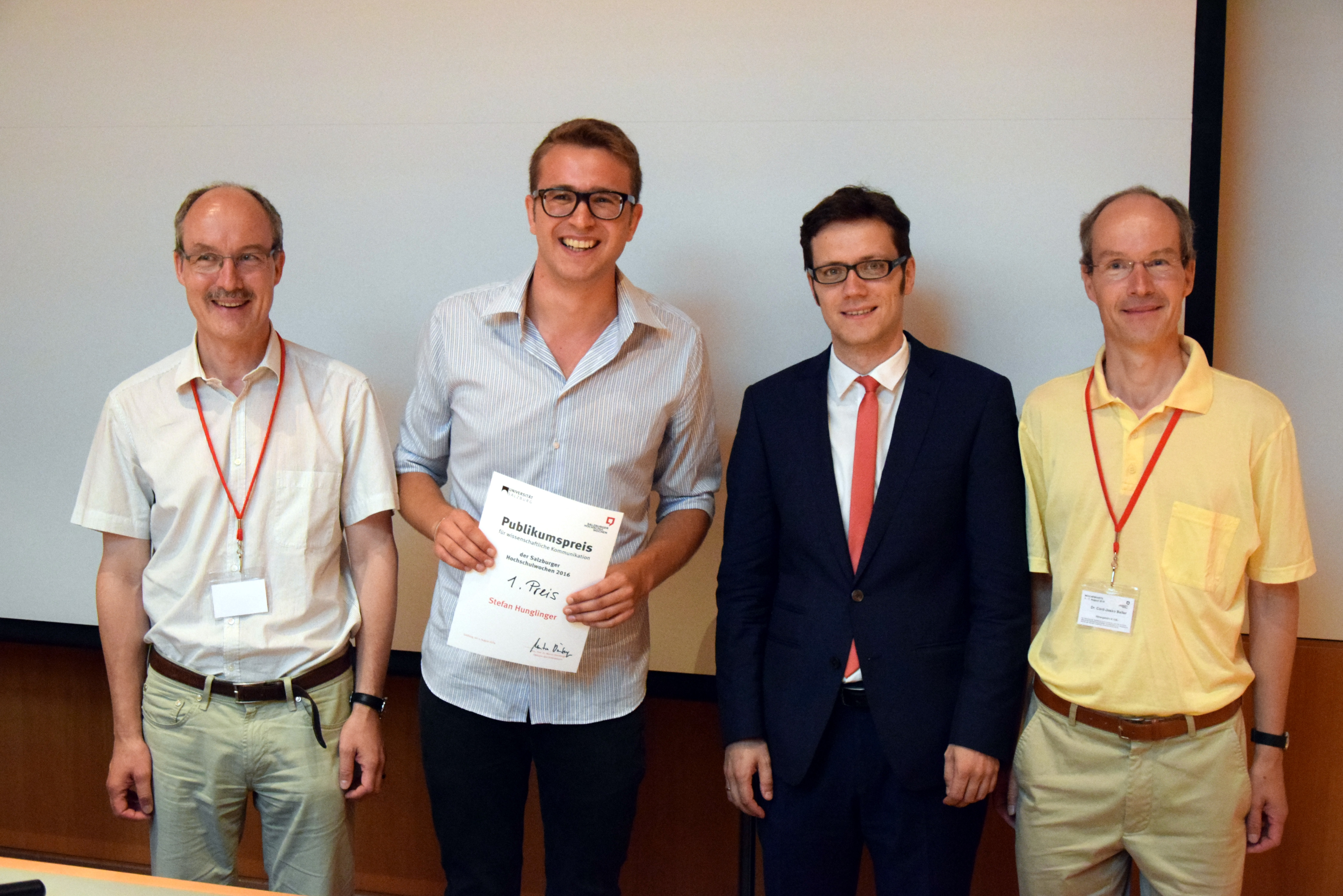 Verleihung des "Publikumspreises" der "Salzburger Hochschulwochen" am 4. August 2016 an den Berliner Politikwissenschaftler Stefan Hunglinger
